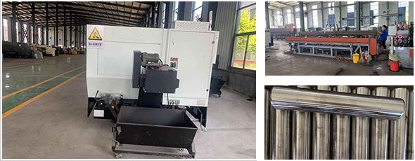 本公司主要產品為:全自動雙頭數控車床、數控雙頭鉆床、雙面兩端自動銑槽機,專用于成品托輥軸的加工制作。全系設備均為自主研發,其成本低,效率高,節省人工的優勢得到客戶的一致好評。